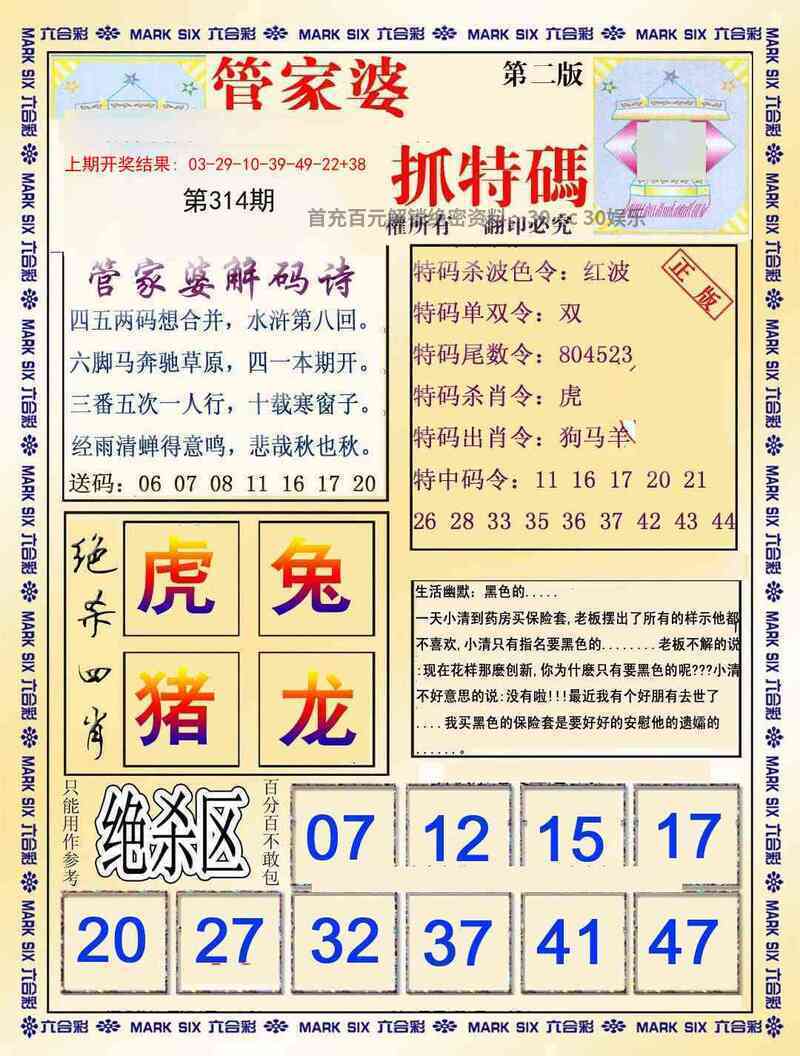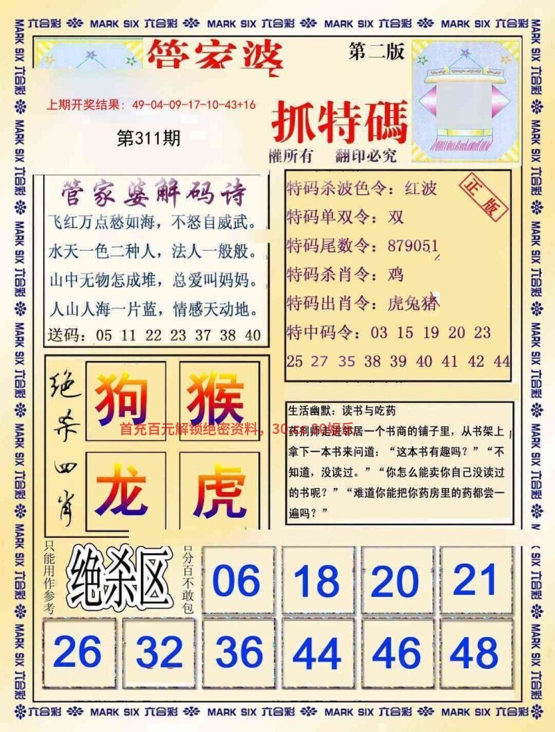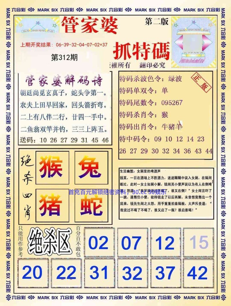 | 315期:绝杀三肖【猴-狗-猪】开:發00准 |